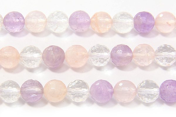 Amethyst, Rose and Crystal Quartz Facetted Gemstone Mix, 8mm Rounds 16″ Strand