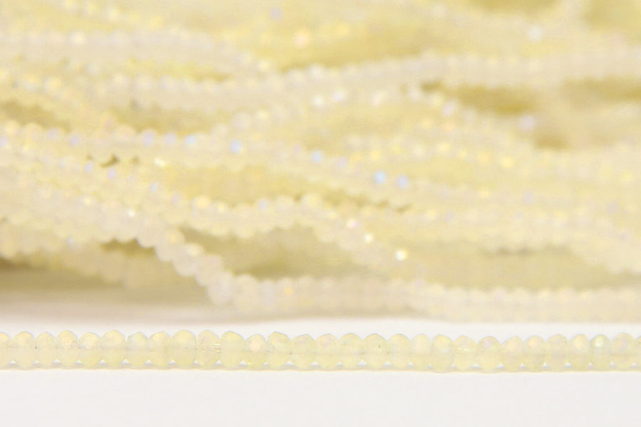Size 11/0 Opaque Primrose AB Aurora MicroCrystal beads. Made at 1.5mm x 2.0mm to match the size of Toho 10/0, Miyuki 11/0 or Preciosa 10/0 seed beads perfectly. Made from high quality facetted crystal glass in packs of approximately 200 beads.