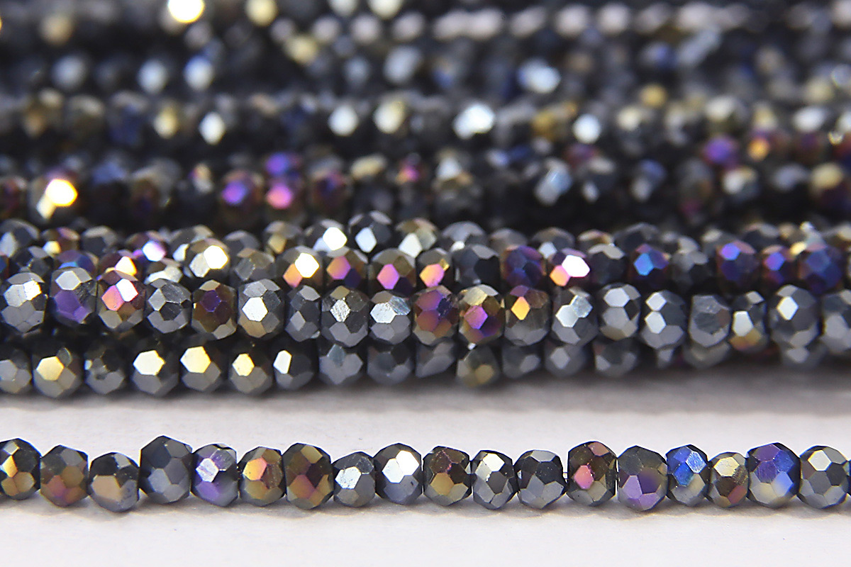 Size 11/0 Rainbow Hematite Aurora MicroCrystal beads. Made at 1.5mm x 2.0mm to match the size of Toho 10/0, Miyuki 11/0 or Preciosa 10/0 seed beads perfectly. Made from high quality facetted crystal glass in packs of approximately 200 beads.