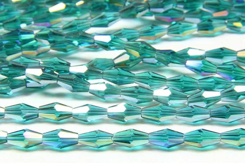 Teal AB Crystal Long Bicone