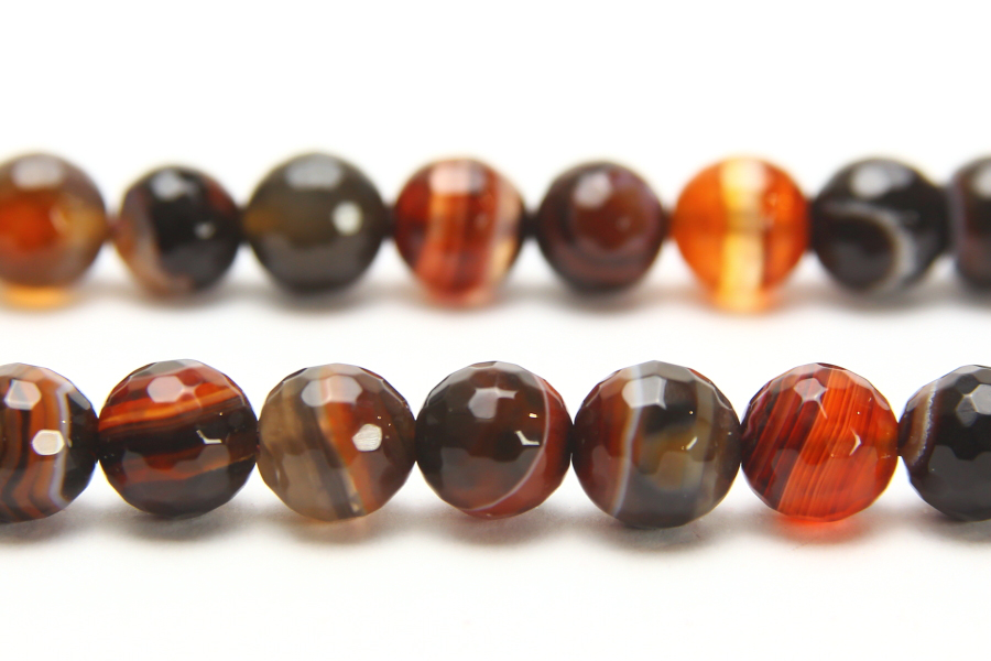 Ember Banded Agate 8mm Facetted Round Semi Precious Gemstones