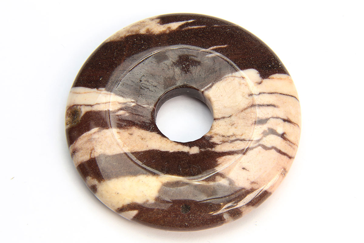 Size 50mm 9mm hole Travatine Onyx Donut. As each natural stone is unique, they all vary slightly. The photograph serves as an example.