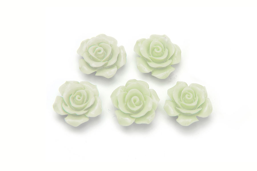 Each of these 10mm Light Sage Rose beads are molded from an alabaster and shell composite then individually hand finished to have pristine edges and details. The Alabaster provides each bead with both durability and a luxurious feel with the shell providing a lusterous appearance and slight translucence as though each gemstone flower has its own gentle inner glow. Each packet contains 5 beads.