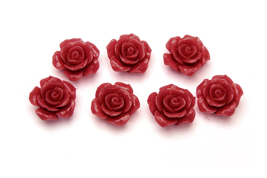 Each of these 12mm Red Rose beads are molded from an alabaster and shell composite then individually hand finished to have pristine edges and details. The Alabaster provides each bead with both durability and a luxurious feel with the shell providing a lusterous appearance and slight translucence as though each gemstone flower has its own gentle inner glow. Each packet contains 7 beads.