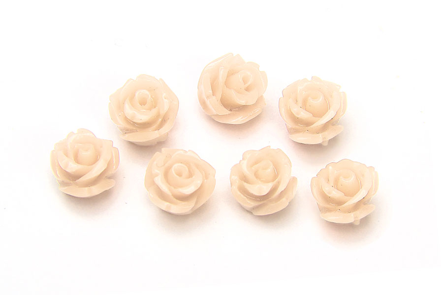 Each of these 7mm Light Cream Rose beads are molded from an alabaster and shell composite then individually hand finished to have pristine edges and details. The Alabaster provides each bead with both durability and a luxurious feel with the shell providing a lusterous appearance and slight translucence as though each gemstone flower has its own gentle inner glow. Each packet contains 7 beads.
