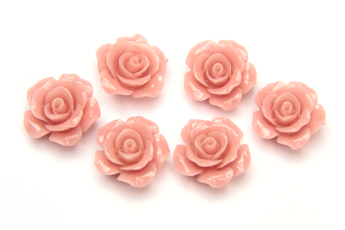 Each of these 15mm Antique Pink Open Rose beads are molded from an alabaster and shell composite then individually hand finished to have pristine edges and details. The Alabaster provides each bead with both durability and a luxurious feel with the shell providing a lusterous appearance and slight translucence as though each gemstone flower has its own gentle inner glow. Each packet contains 6 beads.