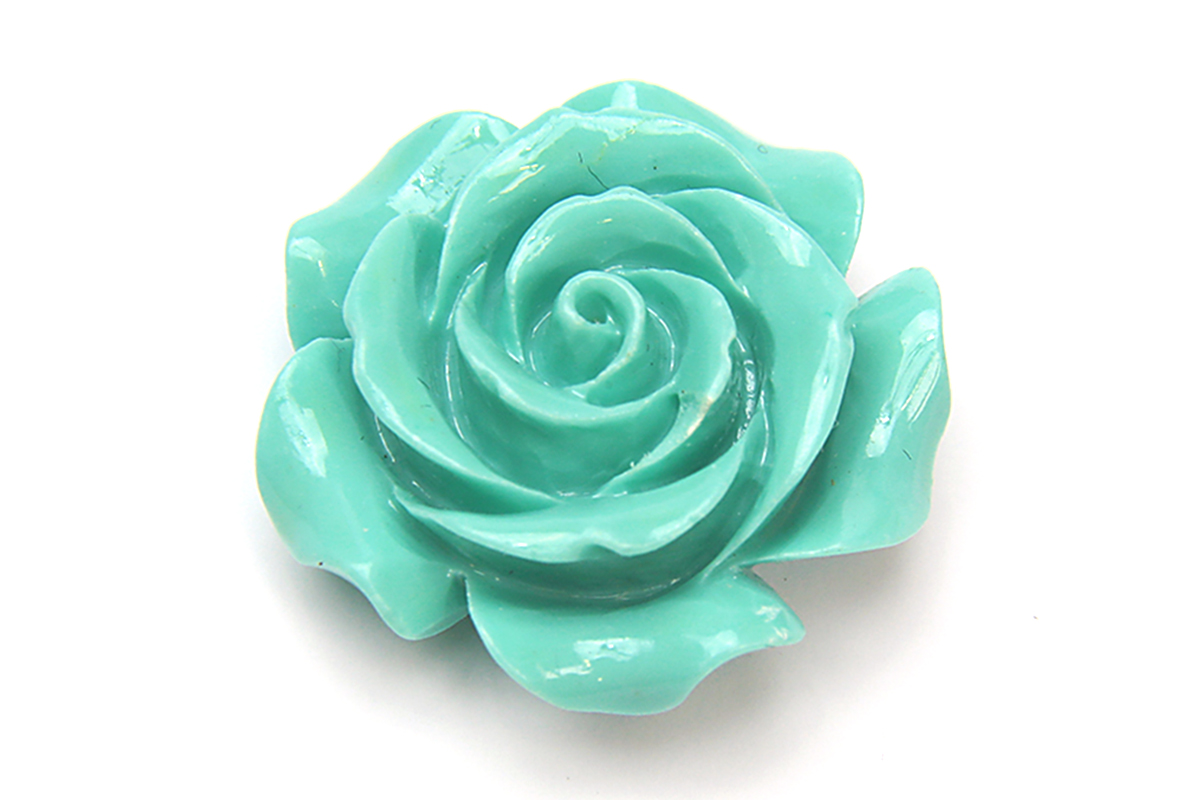 Each of these 25mm Turquoise Open Rose beads are molded from an alabaster and shell composite then individually hand finished to have pristine edges and details. The Alabaster provides each bead with both durability and a luxurious feel with the shell providing a lusterous appearance and slight translucence as though each gemstone flower has its own gentle inner glow. Each packet contains 1 bead.