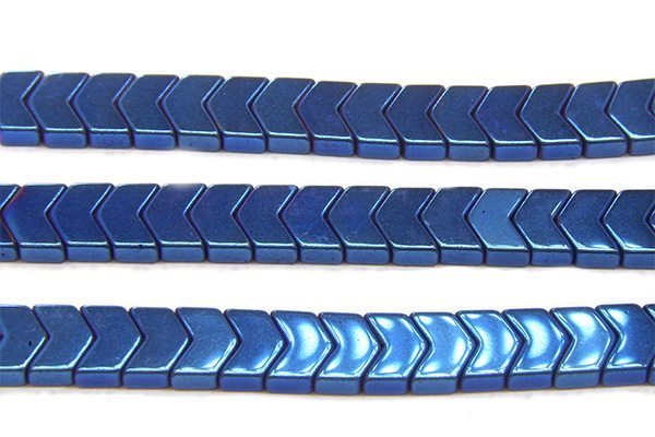 Electric Blue Hematite Chevrons, 6mm 8in Strand