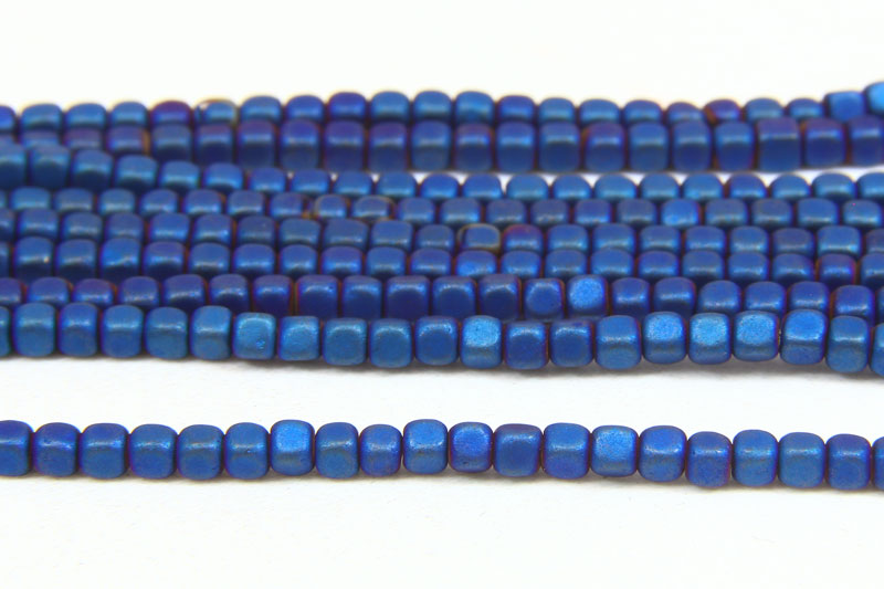 2mm Hematite Matte Electric Blue Rounded Cubes 8in Strand