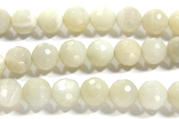 Natural Moonstone Facetted Gemstone, 10mm Round 16″ Strand