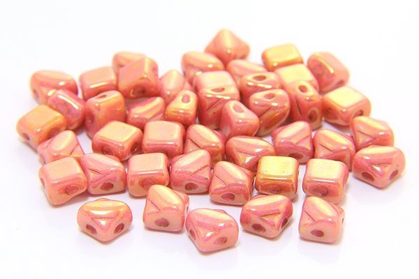 5x5mm Gold Lustred Coral Czech Silky Beads, 40 beads