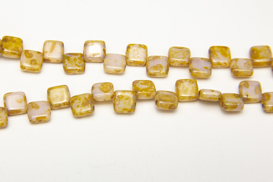 Amber Picasso Opalite 2-Hole 6mm Tile Beads