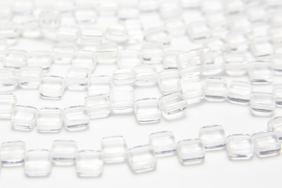 A 33 bead strand of Clear Crystal 2-Hole Tiles made from the highest quality pressed Czech Glass. With 2 holes passing through each one, these beads are excellent for multistranded jewellery and bead weaving designs.