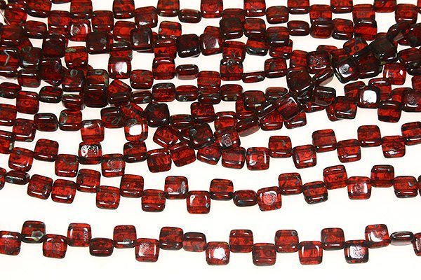 Garnet Picasso 2-Hole 6mm Tile Beads