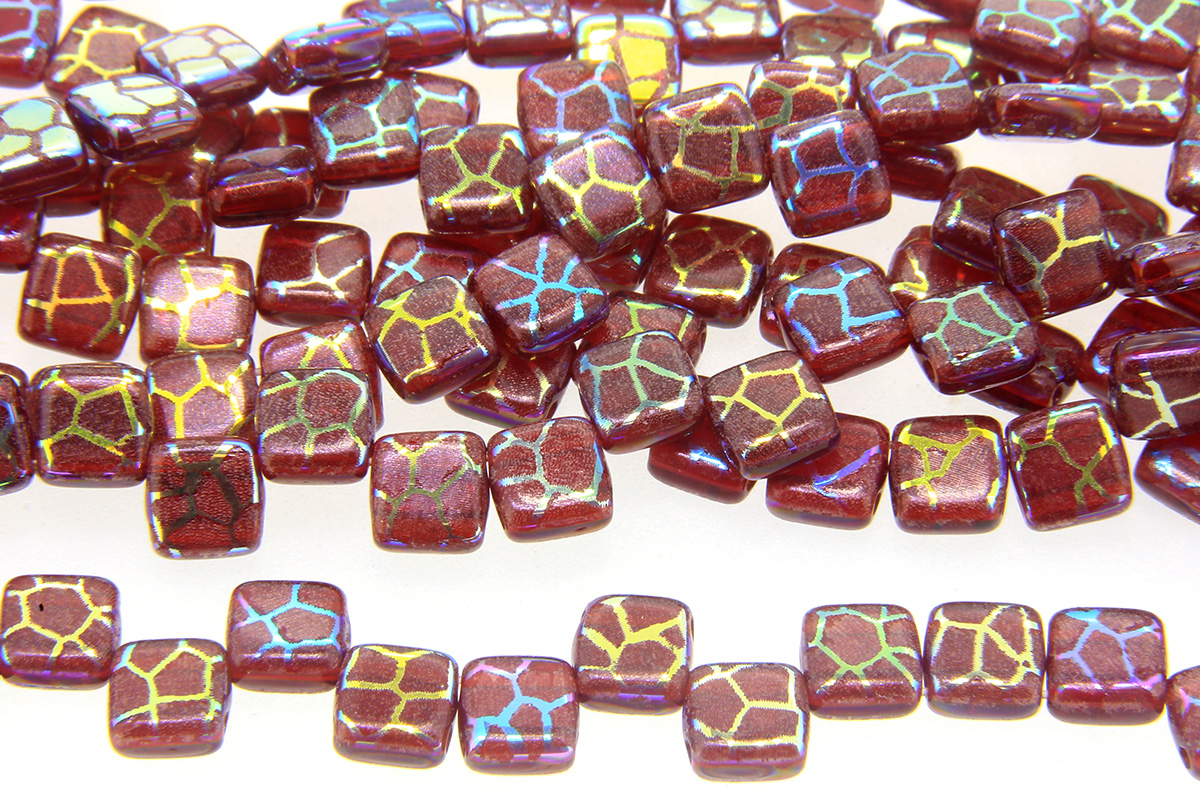 Garnet Reptile Skin Stenciled 2-Hole 6mm Tile Beads