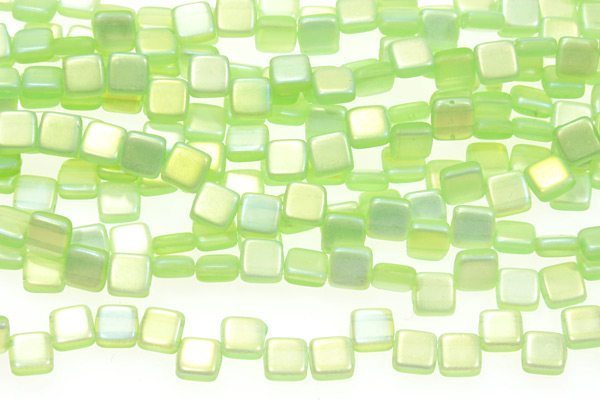 Frosted Ice Green AB 2-Hole 6mm Tile Beads