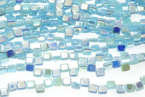 Sky Blue AB 2-Hole 6mm Tile Beads