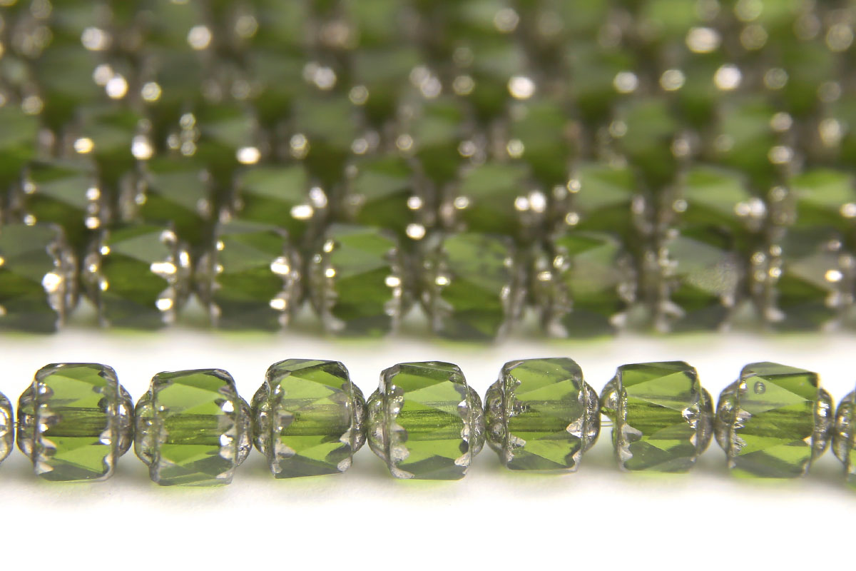 Olive, Silver Crowned 6mm Facetted Cathedral Beads, 25 pieces