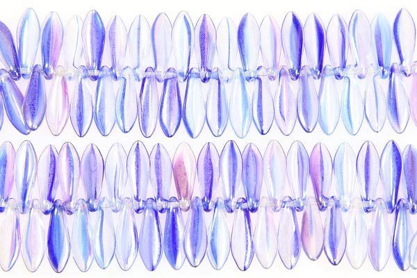 A fun strand of Lustre Blue Crystal Daggers made from the highest quality pressed Czech glass. These beads are great for use as flower petals in floral designs or as long focal drops in necklaces. Great fun to use in your beadweaving designs.