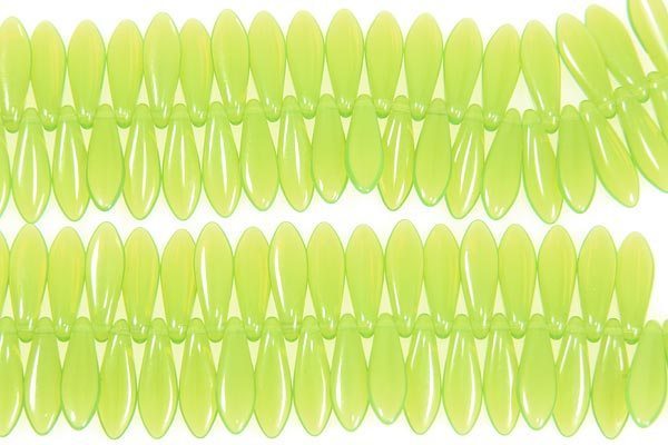 A fun strand of Spring Green Milky Daggers made from the highest quality pressed Czech glass. These beads are great for use as flower petals in floral designs or as long focal drops in necklaces. Great fun to use in your beadweaving designs.