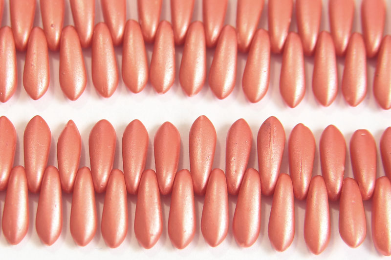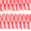 3x11mm Satin Coral Czech Glass Daggers, 50 beads. Pressed Czech Glass with a pearl surface