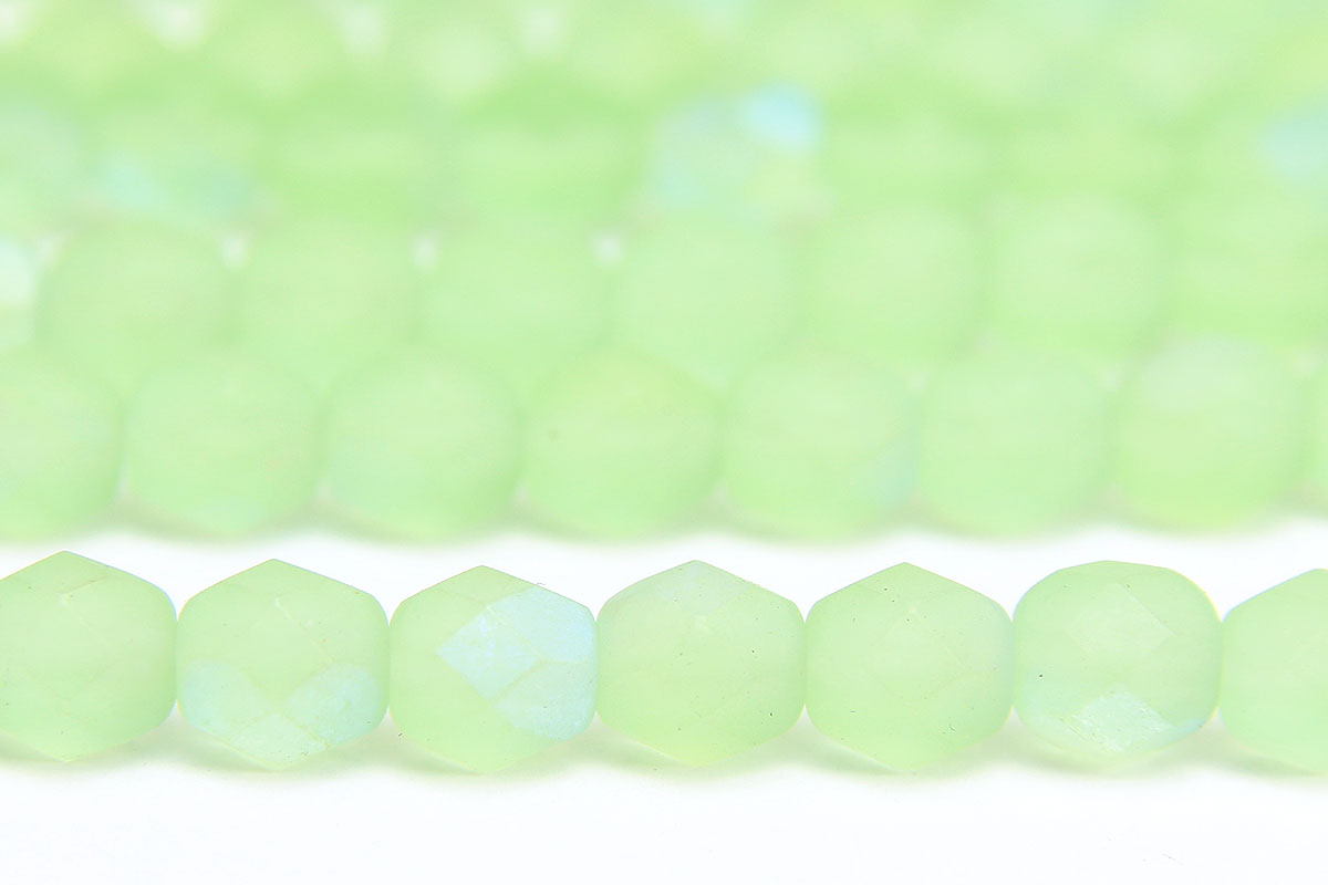 6mm Frosted Pastel Green AB Firepolished Czech Glass