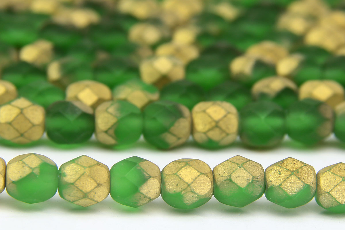 6mm Matte Forest Green Gold Mix Firepolished Czech Glass