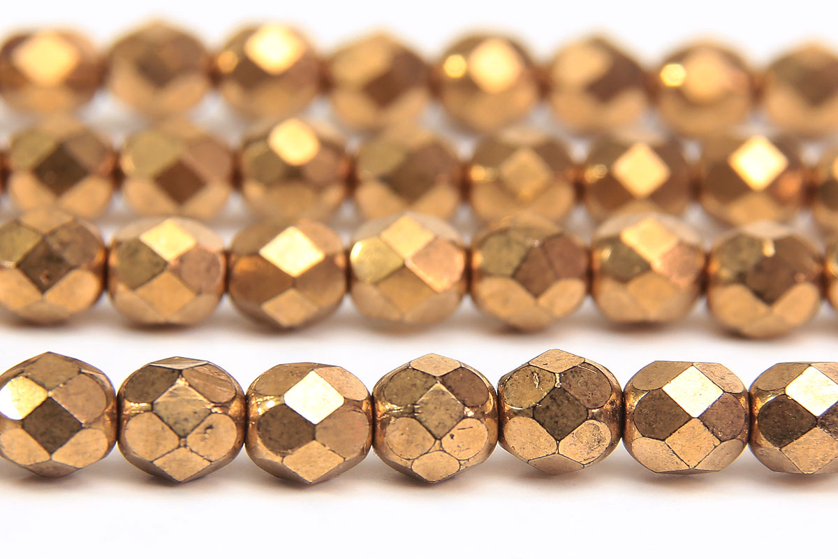 Tags: 6mm Czech Glass, beads, Czech, Czech Glass, czech glass beads, Fire Polished, fire polished beads, Glass, Metallic Gold, Strand