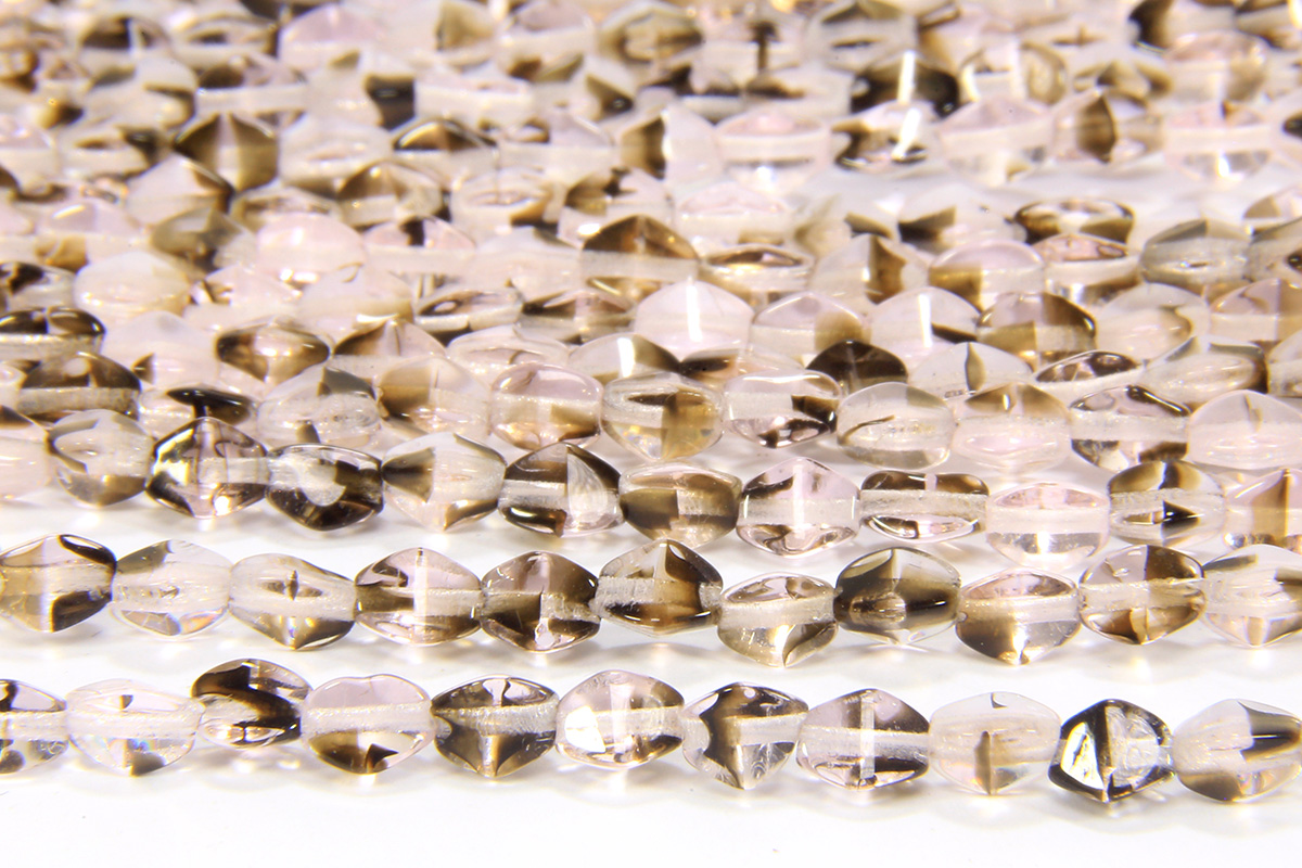 A 38 bead strand of high quality Czech pressed glass Charcoal with a light touch of Pink Pinch Beads. With 3 flat surfaces to catch the light that are tapered at each end to give a barrel like appearance, these beautiful beads are perfect G8 adding some interesting texture to your designs in an understated way. Clear glass