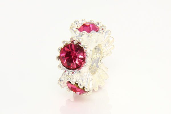 A beautiful Pandora Style Cherry Quartz Fancy Ring crystal studded bead with a 4mm hole. They make an excellent addition to your jewellery.
