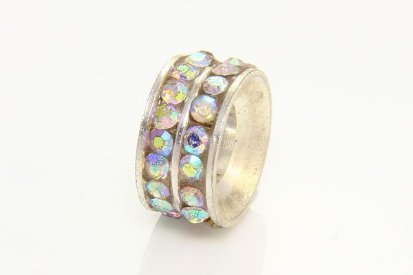 A beautiful Pandora Style Clear AB Double Row Ring crystal studded bead with a 4mm hole. They make an excellent addition to your jewellery.