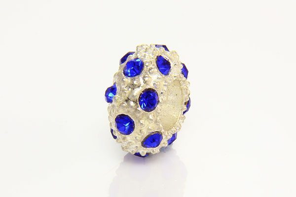 A beautiful Pandora Style Cobalt Blue with Silver Marcasite Small Donut crystal studded bead with a 4mm hole. They make an excellent addition to your jewellery.