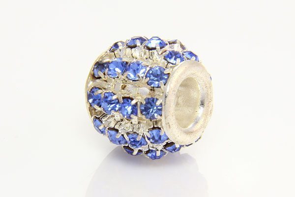 A beautiful Pandora Style French Blue Diamante Barrel crystal studded bead with a 4mm hole. They make an excellent addition to your jewellery.
