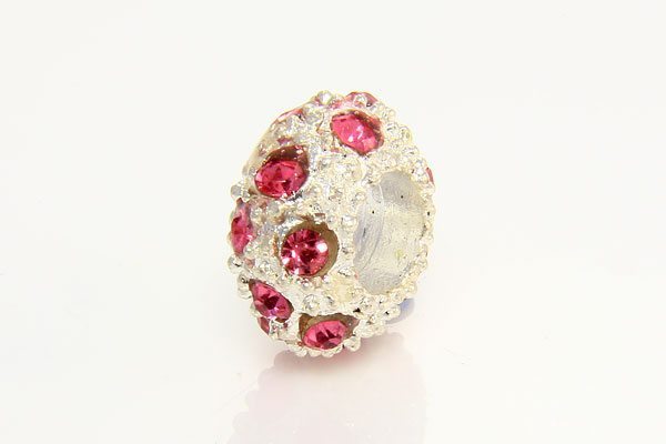 A beautiful Pandora Style Rose Quartz with Silver Marcasite Small Donut crystal studded bead with a 4mm hole. They make an excellent addition to your jewellery.