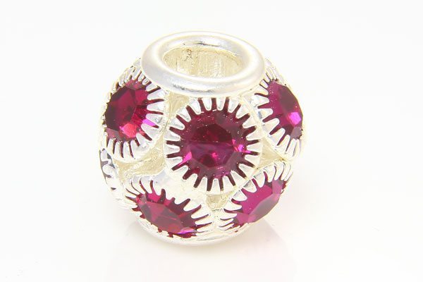 A beautiful Pandora Style Blush Cubic Zirconia crystal studded bead with a 4mm hole. The patterned silver plated base has 5mm crystals that give a brilliant sparkle, perfect for both day and night. They make an excellent focal point for your jewellery.