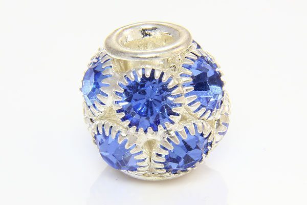 A beautiful Pandora Style French Blue Cubic Zirconia crystal studded bead with a 4mm hole. The patterned silver plated base has 5mm crystals that give a brilliant sparkle, perfect for both day and night. They make an excellent focal point for your jewellery.