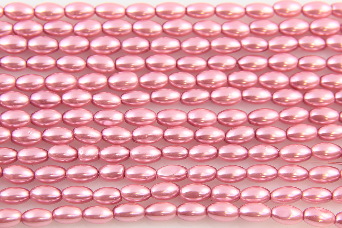 Rice Shape Oval Glass Pearls. 7x4mm Rose. Approx 72 beads.
