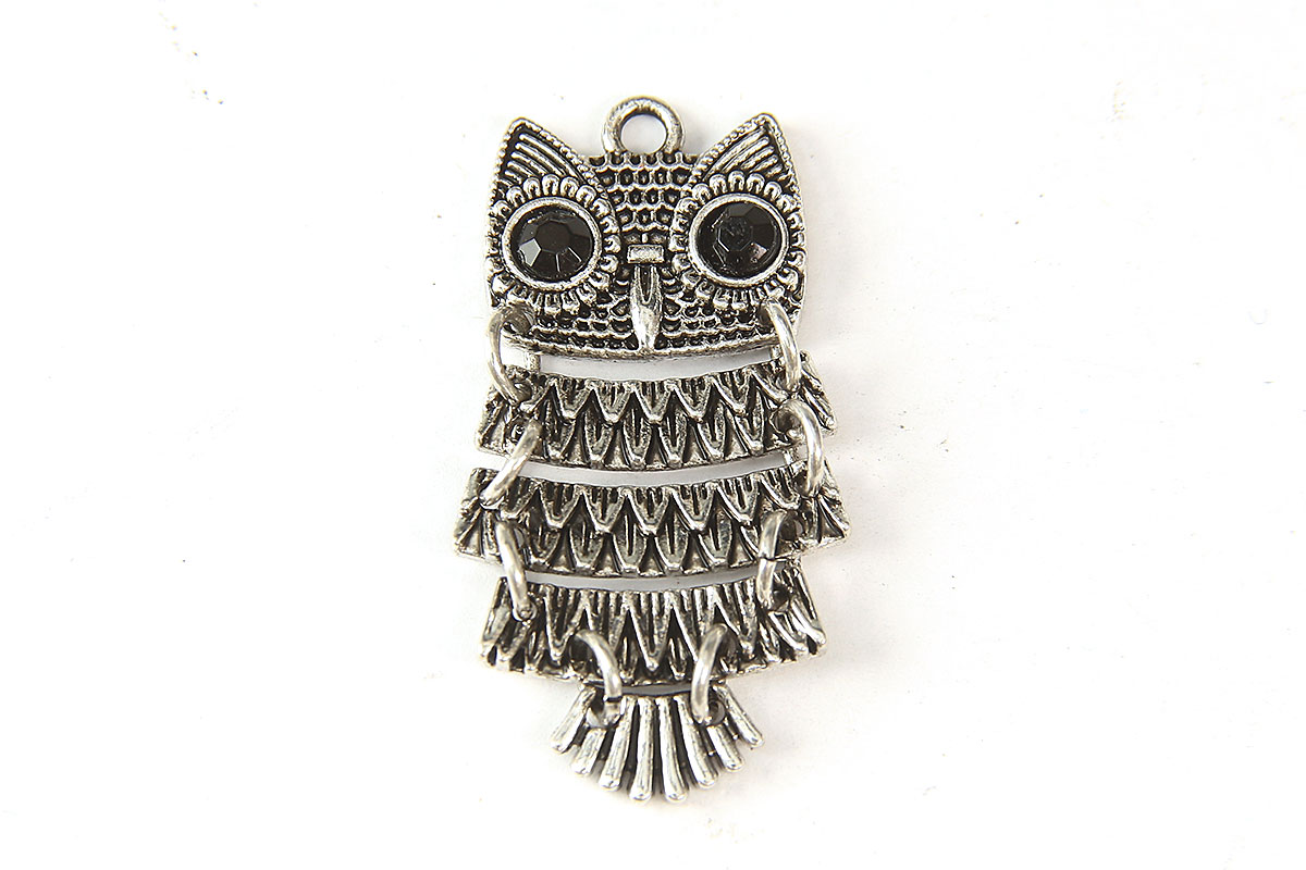 35 x 18mm Semi Precious Silver Decorative Owl Pendant