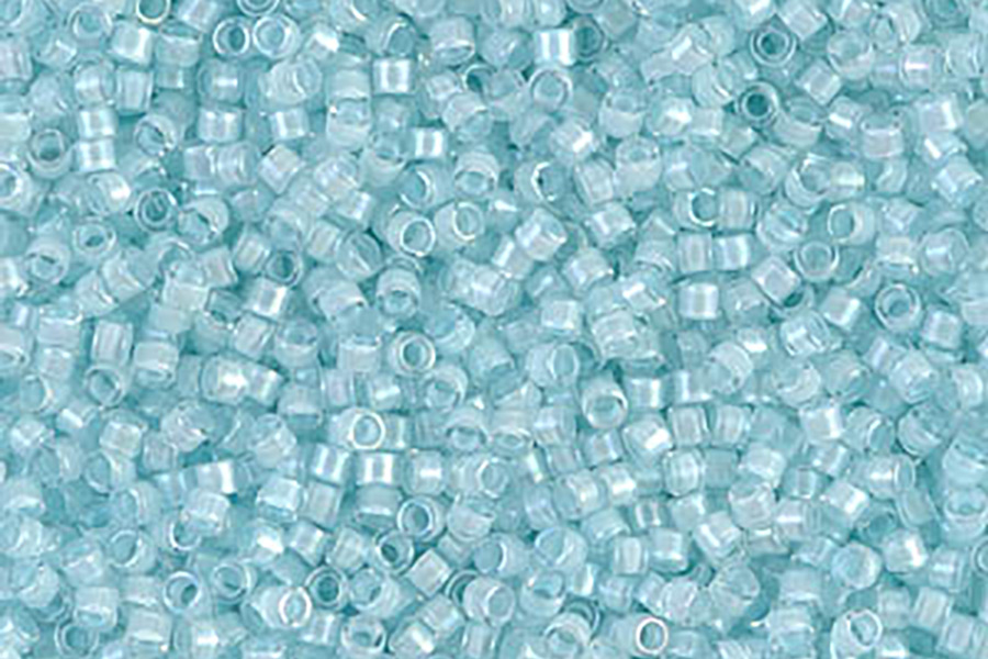 Size 11 Miyuki Aqua Mist Lined Crystal Luster Delica Beads in a resealable bag, Approx 5 grams