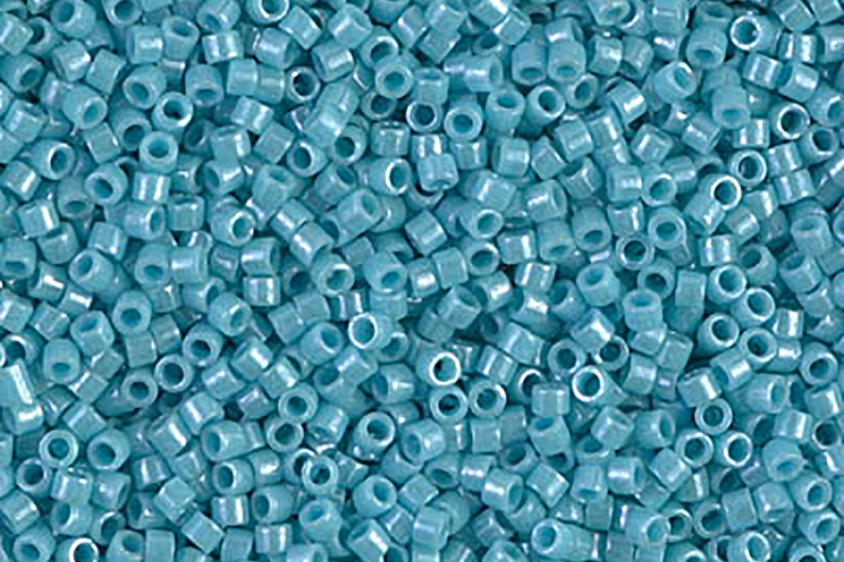 Size 11 Miyuki Light Aqua Luster Delica Beads in a resealable bag, Approx 5 grams