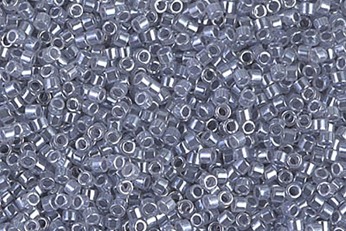 Size 11 Miyuki Lined Crystal Grey Delica Beads in a resealable bag, Approx 5 grams