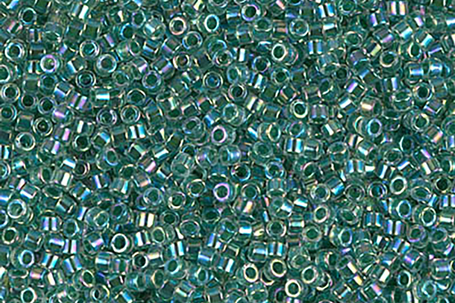 Size 11 Miyuki Lined Lime AB Delica Beads in a resealable bag, Approx 5 grams