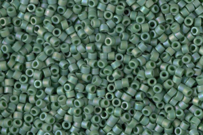 Size 11/0 Miyuki Matte Opaque Glazed Turtle Green AB Delica Beads, Approx 5 grams
