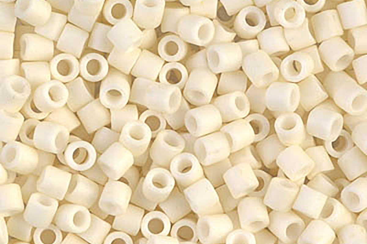 Size 11 Miyuki Opaque Jasmine White Delica Beads in a resealable bag, Approx 5 grams