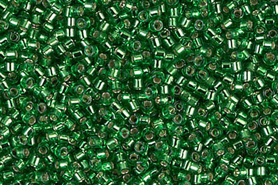 Size 11 Miyuki Silver Lined Light Green Delica Beads in a resealable bag, Approx 5 grams