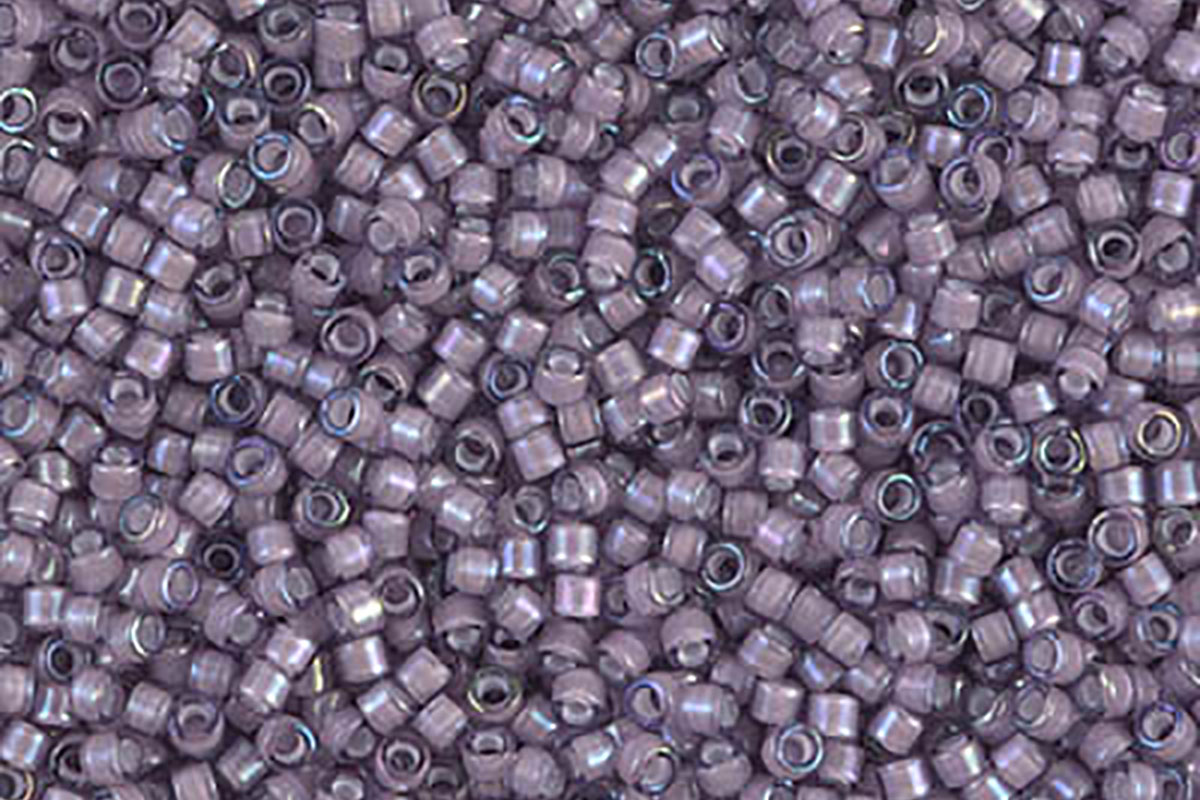 Size 11 Miyuki White Lined Amethyst AB Delica Beads in a resealable bag, Approx 5 grams