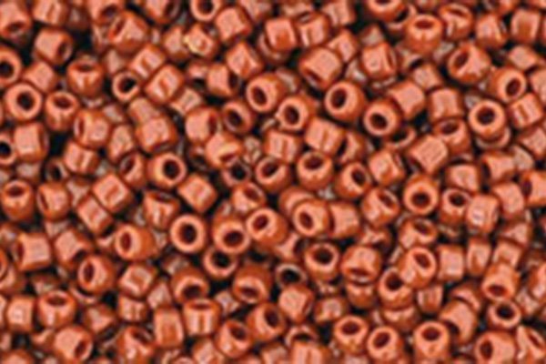 A 7g resealable tube of high quality Opaque Terracotta Toho size 15/0 seed beads. The extremely precise shape and large hole of these beautiful beads makes them perfect for use in bead weaving projects. The rich, wood-like colour of these Opaque Terracotta seed beads is perfect for autumn themed designs or highlighting a topaz coloured crystal.