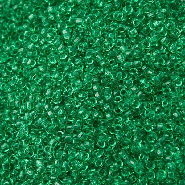Size 15 Transparent Beach Glass Green Toho Seed Beads in a 10 gram bag