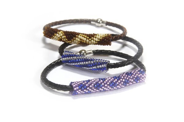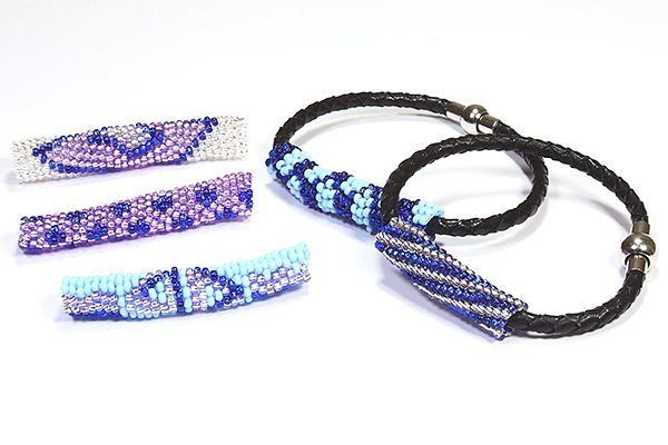 The base for this amazing interchangeable bracelet set is made from the finest quality 4mm woven leather and finished with a strong but elegant magnetic clasp that easily allows you to quickly and easily interchange your Hiawatha feature beaded tubes to suit your outfit. Each tube is made from gorgeous Preciosa seed beads that sit together seamlessly to really bring your bead patterns to life!
