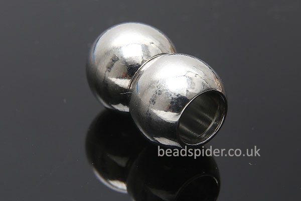 6mm Hole Silver Double Ball Magnetic Glue-in Clasp